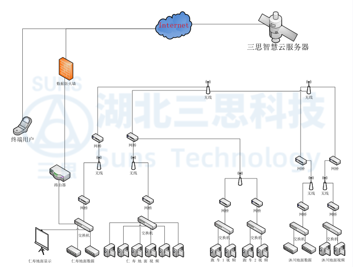 ▲纜索吊監(jiān)控系統(tǒng)網(wǎng)絡(luò)拓?fù)鋱D
