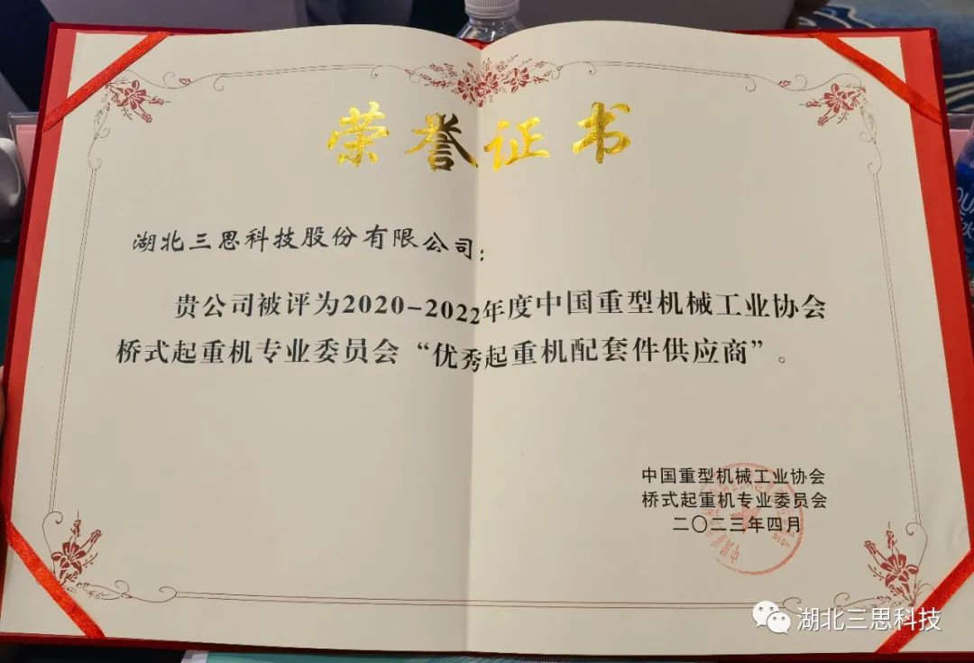 湖北三思科技,作為特種設(shè)備物聯(lián)網(wǎng)安全保護(hù)專家,本次榮獲2020-2022年度優(yōu)秀起重機(jī)配套件供應(yīng)商,是起重行業(yè)以及客戶對(duì)于湖北三思科技20年來堅(jiān)持和專業(yè)的認(rèn)可,更是一份責(zé)任,未來湖北三思科技將繼續(xù)攜手協(xié)會(huì),持續(xù)開放創(chuàng)新,用專業(yè)和服務(wù)守護(hù)特種設(shè)備的安全!