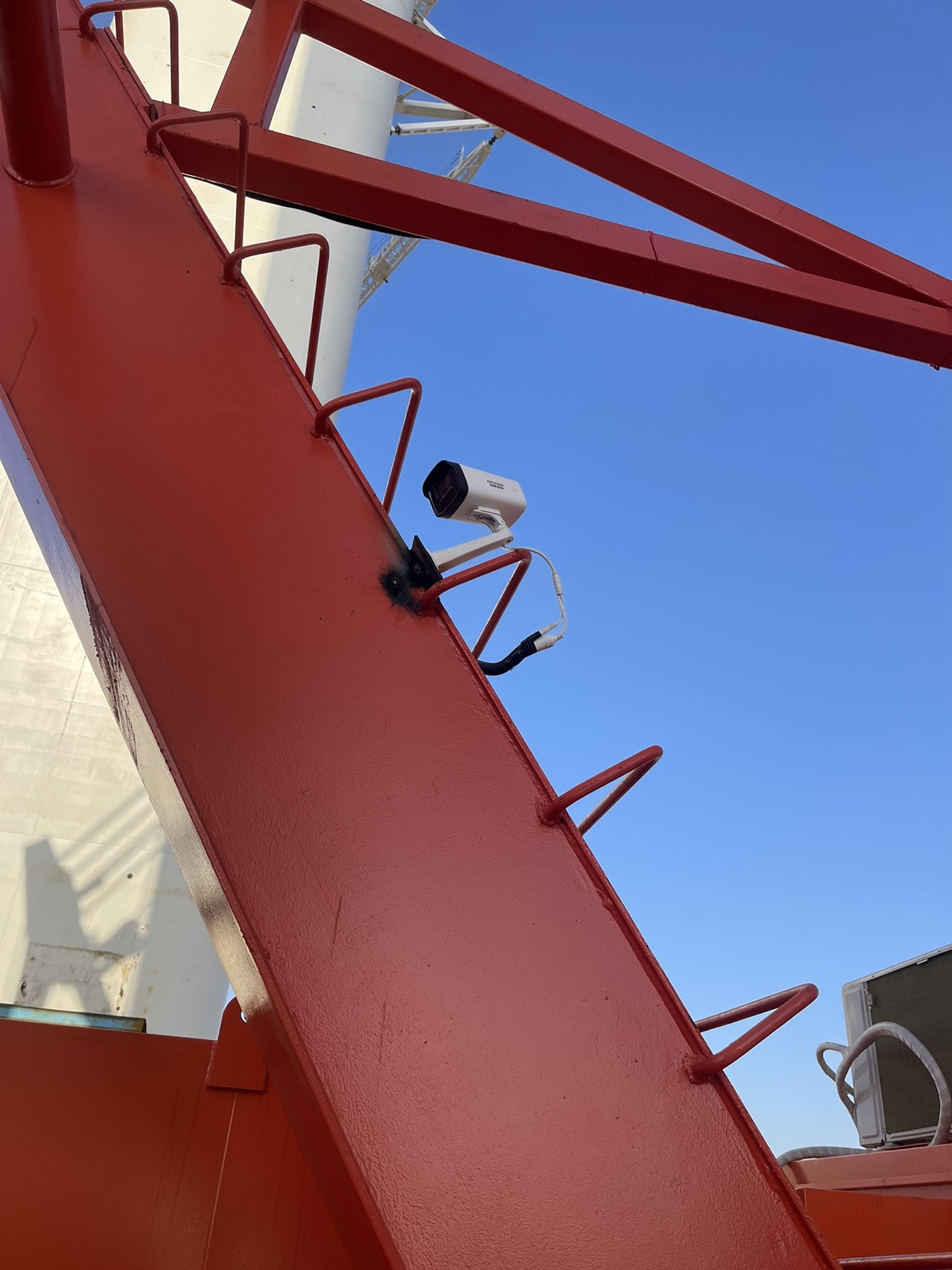 桅桿吊起升卷揚、變幅卷揚各裝1路攝像頭,用于監(jiān)控現(xiàn)場電機卷揚;桅桿吊桿頭裝一路球機,用于監(jiān)控吊裝區(qū)域。監(jiān)控設備的視頻監(jiān)控顯示器放置于司機室內(nèi),可以讓駕駛員全方位掌握桅桿吊的實時運行狀況,提高了操作的安全性。
