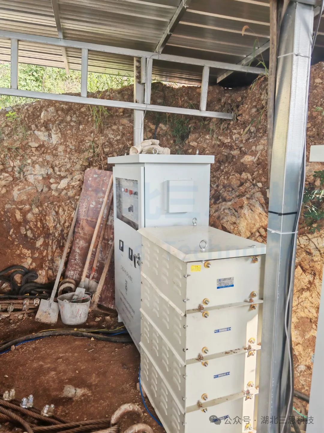 ▲戶外電氣柜、GNSS北斗定位基站、網(wǎng)橋無(wú)線傳輸系統(tǒng)安裝完工展示。