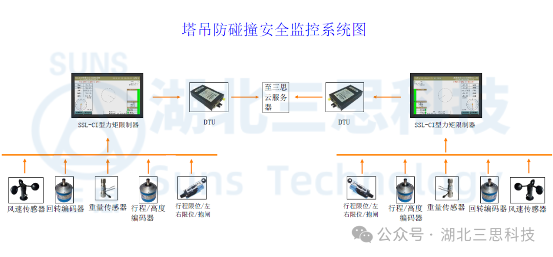 塔機安全監(jiān)控防碰撞系統(tǒng)實時監(jiān)測塔機運行狀態(tài)監(jiān)控。監(jiān)控塔吊的運行安全指標,包括吊重、起重力矩、變幅、高度、工作回轉(zhuǎn)角及作業(yè)高度風速,區(qū)域限制、防碰撞保護、在臨近額定限值時發(fā)出聲光預警和報警,實現(xiàn)塔吊危險作業(yè)自動截斷。